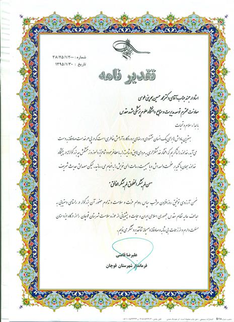 فرماندار شهرستان قوچان از پشتیبانی های بی شائبه معاون توسعه مدیریت و منابع دانشگاه علوم پزشکی مشهد تقدیر و تشکر نمودند. به گزارش وب دا، علیرضا قامتی فرماندار شهرستان قوچان ضمن اشاره به توجه و عنایت خاص معاون توسعه مدیریت و منابع دانشگاه علوم پزشکی مشهد در حمایت و پشتیبانی از حوزه سلامت شهرستان قوچان و افزایش رضایت مندی مردم شریف شهرستان قوچان از وی تشکر و قدردانی نمود. قامتی ابراز امیدواری کرد در سال 95 همچنان شاهد رشد و پیشرفت فرآیندها به منظور ارتقاء ارائه خدمات سلامت و درمان مردم شهرستان قوچان باشیم. |